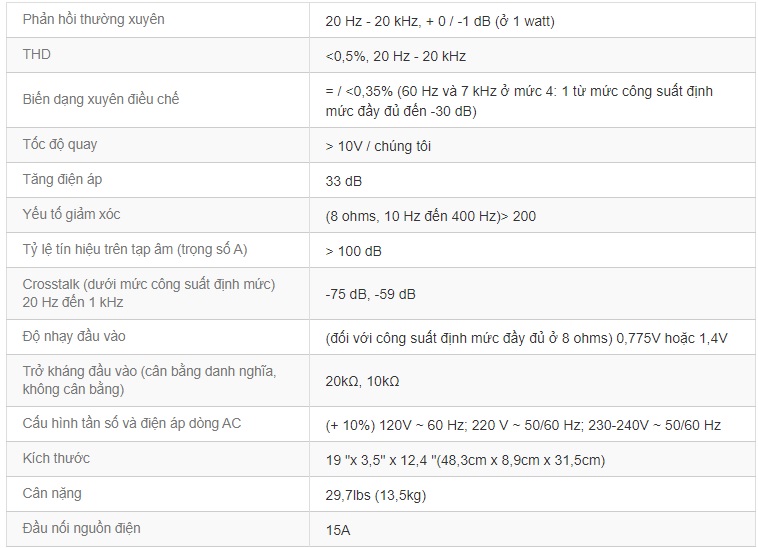 Thông số kỹ thuật của cục đẩy Crown XLi2500