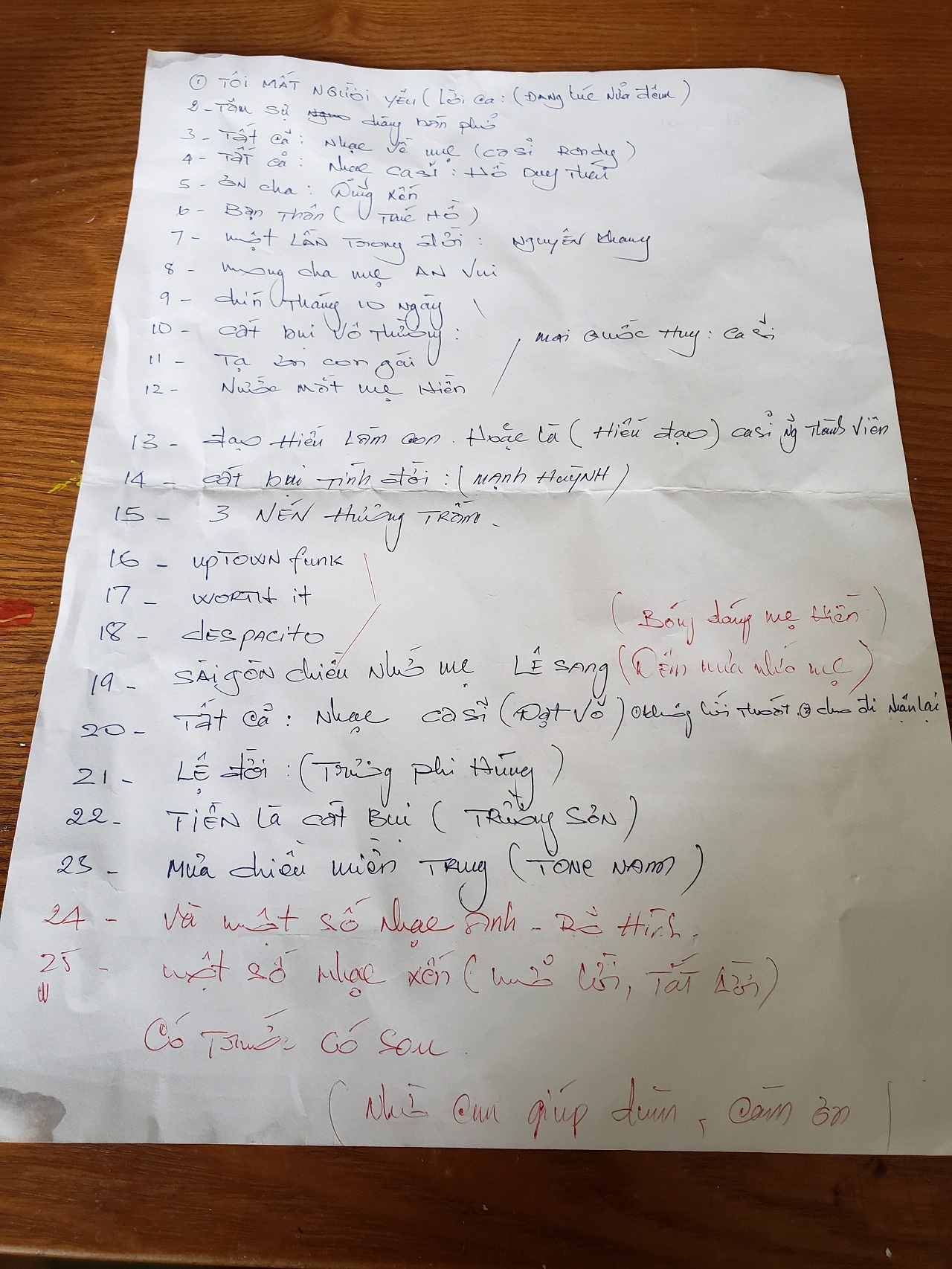 Danh sách các bài hát do khách hàng yêu cầu, tất cả đều đã có trong Egreat A8.