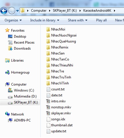 Danh mục Karaoke có trong ổ cứng của Egreat A8
