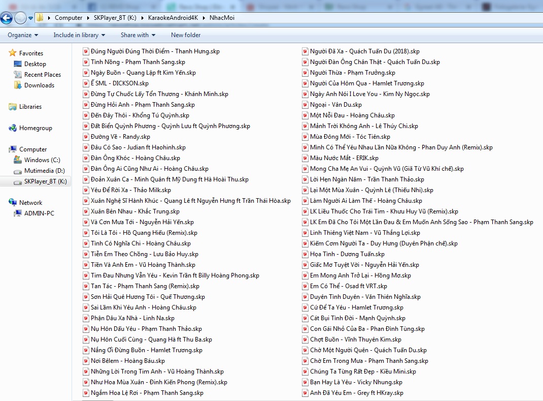 Chưa hết, chúng tôi biết, gu thưởng thức âm nhạc của khách hàng trong và ngoài nước là khác nhau, vì vậy, Egreat A8 cho phép thêm/xóa bài hát trong máy 1 cách ... không thể dễ dàng hơn. Chỉ việc gắn ổ cứng vào máy vi tính (computer hoặc laptop), bài hát được phân loại rõ ràng theo chủ đề trong ổ cứng. Nếu không thích bài hát nào hoặc ca sỹ nào, bạn có thể tự tay xóa. Việc thêm bài hát cũng vậy, bỏ nhạc vô thư mục trong ổ cứng, gắn lại ổ vào đầu Egreat A8, đồng bộ danh sách Karaoke và chọn bài thôi !