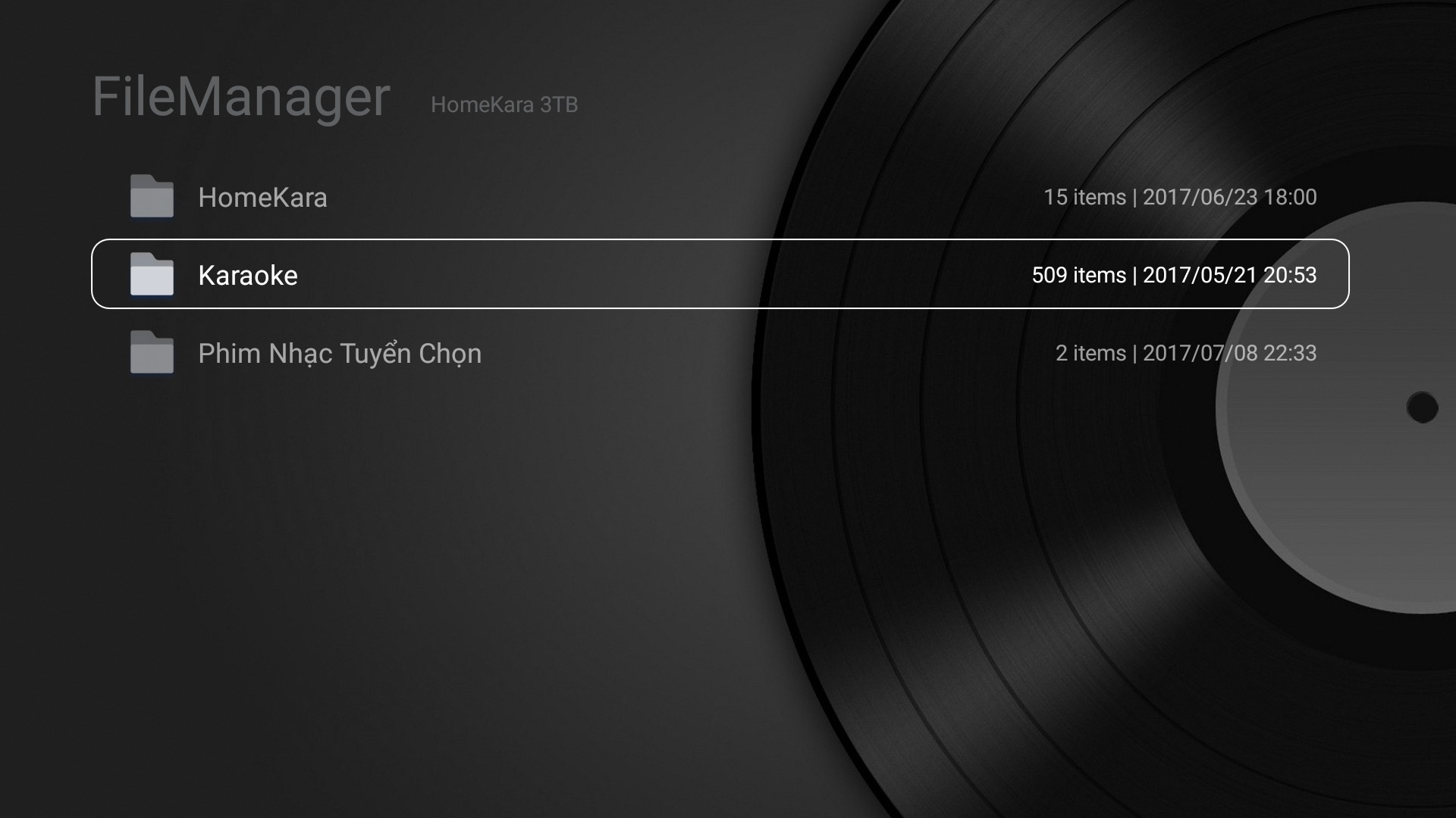 Thư mục Karaoke khi duyệt ổ cứng trực tiếp trên đầu máy bằng ứng dụng File Manager: