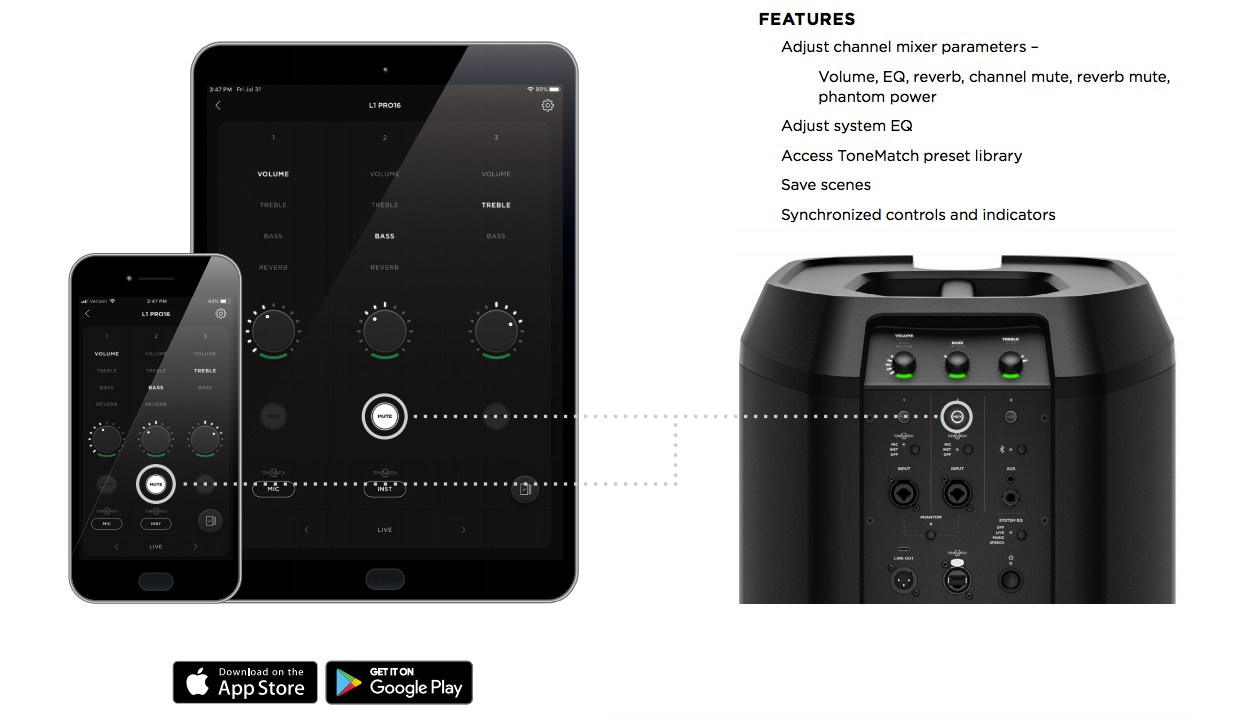 Với ứng dụng Bose MUSIC, bạn có thể điều chỉnh cài đặt bộ trộn ngay lập tức từ thiết bị di động của mình hoặc thậm chí đi bộ trong phòng, nghe âm thanh của bộ trộn và tinh chỉnh khi bạn di chuyển. Thay đổi cài đặt âm lượng và âm báo trong ứng dụng và xem bộ mã hóa LED trên L1 Pro của bạn di chuyển để khớp - bộ trộn và ứng dụng luôn đồng bộ theo thời gian thực. Với ứng dụng L1 Mix, bạn sẽ có được kết nối nâng cao hiệu suất của mình, mang lại cho bạn sự linh hoạt hơn để thực hiện các chỉnh sửa nhanh chóng thông qua các điều khiển trực quan và tức thì.