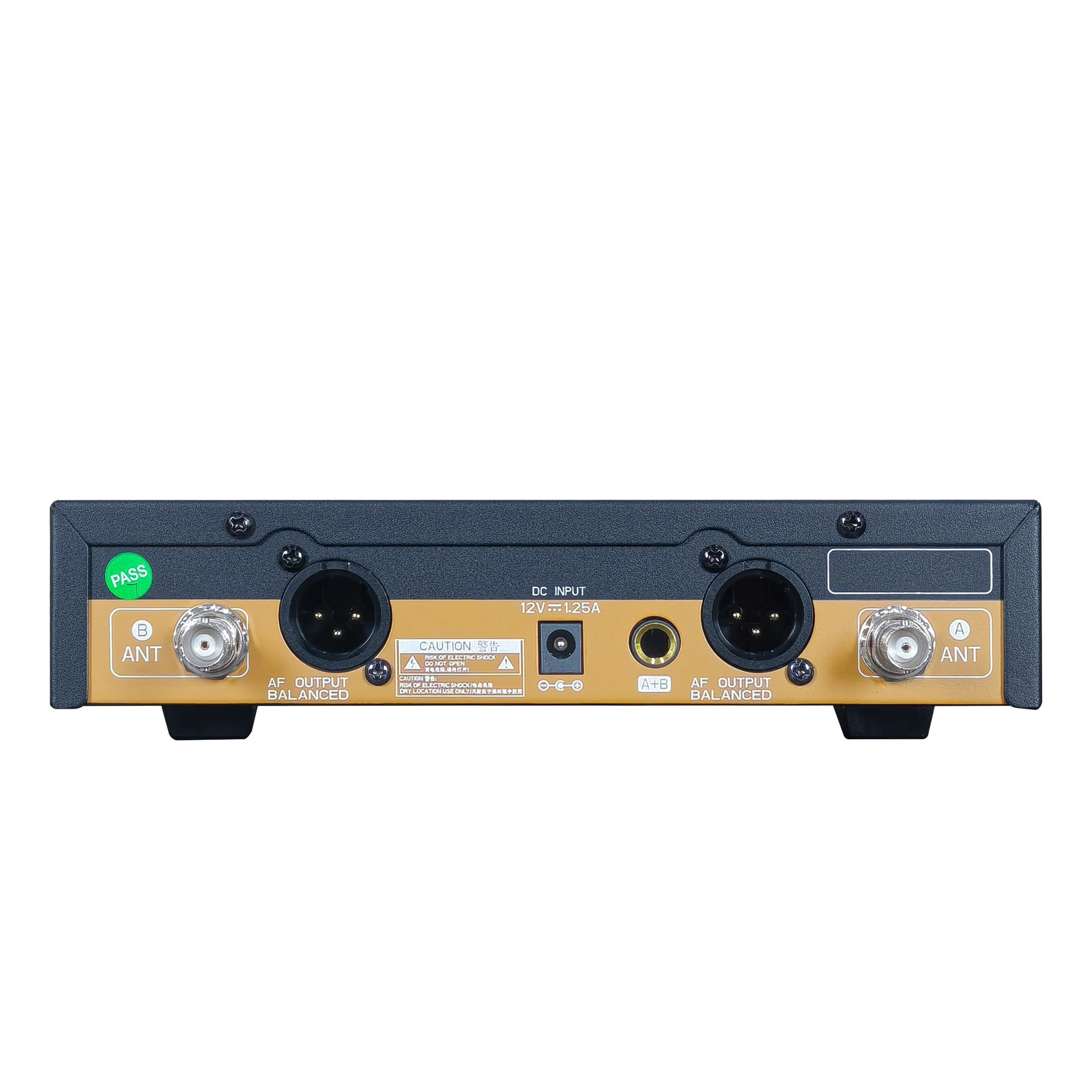 Đối với đầu thu, hãng thiết kế nhỏ gọn, nổi bật là màn hình rất lớn hiển thị đầy đủ các thông số cần thiết như tần số sóng, số kênh sóng, tình trạng pin của tay mic. Công tắc nguồn được thiết kế ở phía trước giúp việc tắt mở thuận tiện hơn.