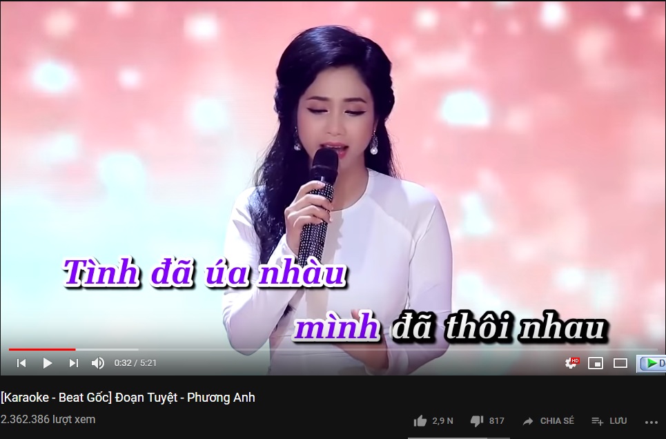 Ca khúc Đoạn Tuyệt do ca sỹ Phương Anh trình bày, phiên bản Karaoke MTV được chia sẻ miễn phí trên YouTube