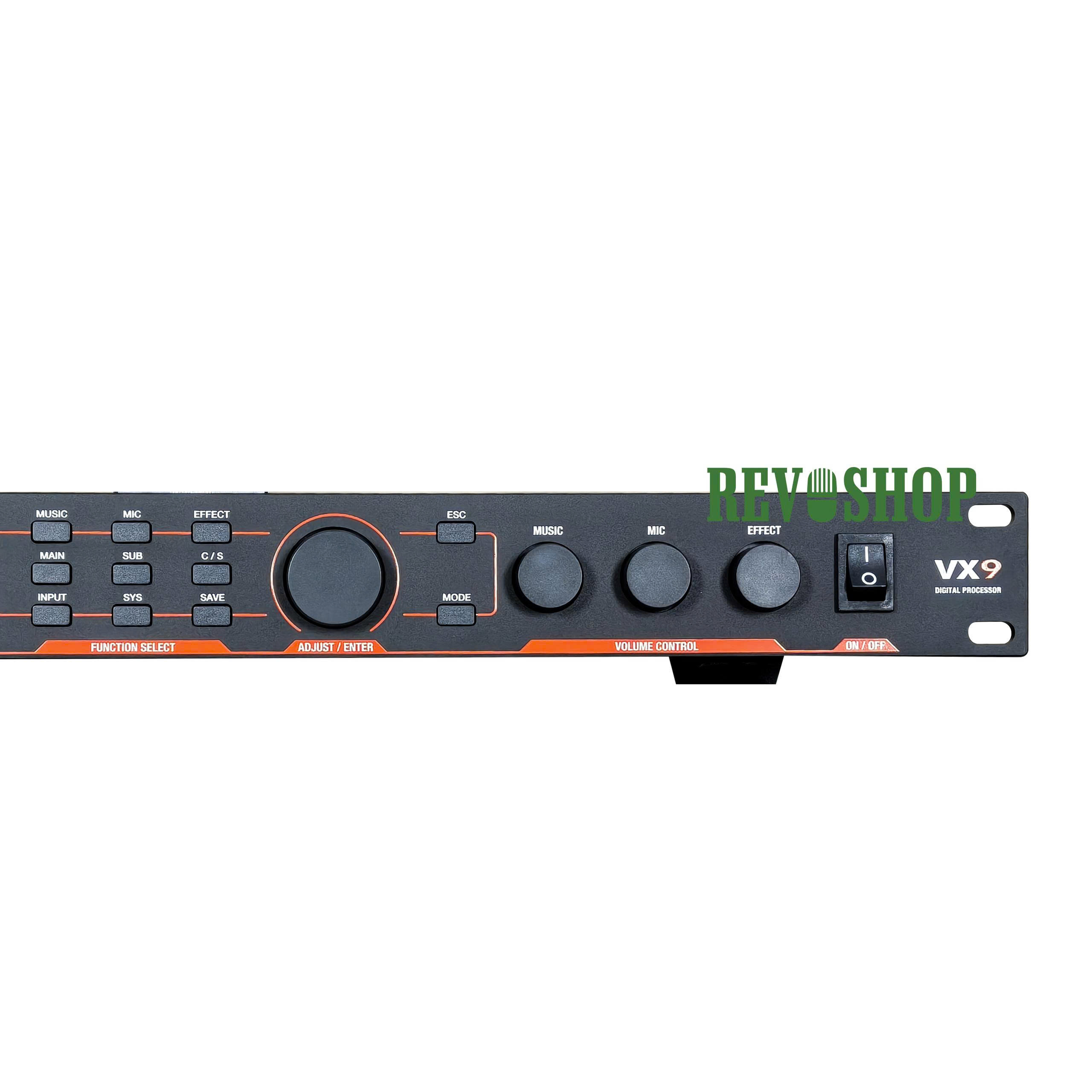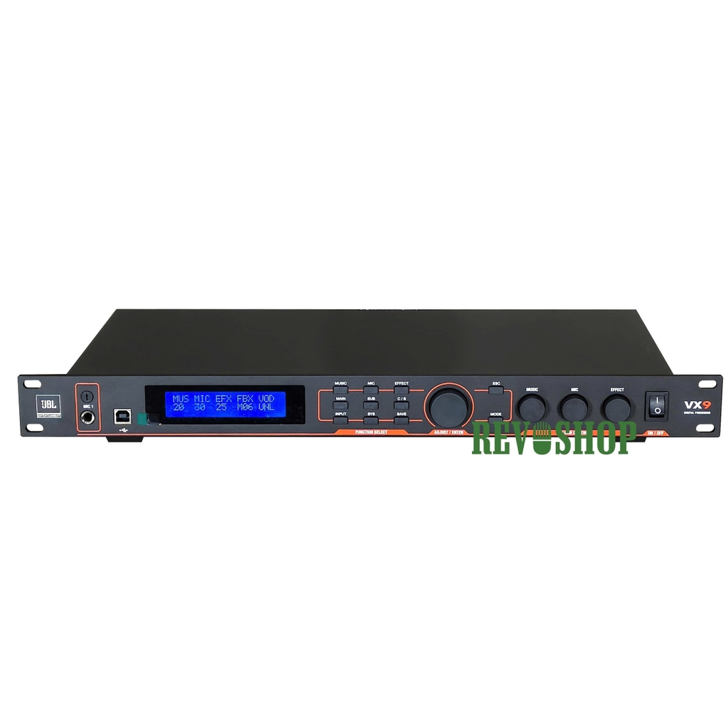Mang trong mình hơn 10 năm kinh nghiệm về hệ thống KTV và 75 năm thiết kế loa, VX9 tích hợp tất cả các thành phần hệ thống của giải pháp tổng thể JBL Professional, bao gồm loa JBL KTV, bộ khuếch đại Crown và micro không dây JBL. Giao diện người dùng đồ họa PC mới được cải tiến, cho phép thay đổi kích thước nhiễu màn hình để dễ dàng vận hành. VX9 cung cấp 16 cài đặt trước điều chỉnh dành riêng cho loa JBL Professional KTV và micro JBL Professional, EQ tham số 15 băng tần cho đầu vào nhạc và EQ tham số 20 băng tần cho mỗi đầu vào micrô riêng lẻ. Động cơ phản hồi và hiệu ứng vang được xử lý riêng biệt bởi DSP độc lập. RS232 được cung cấp cho hệ thống tự động hóa trung tâm và nhà thông minh.
