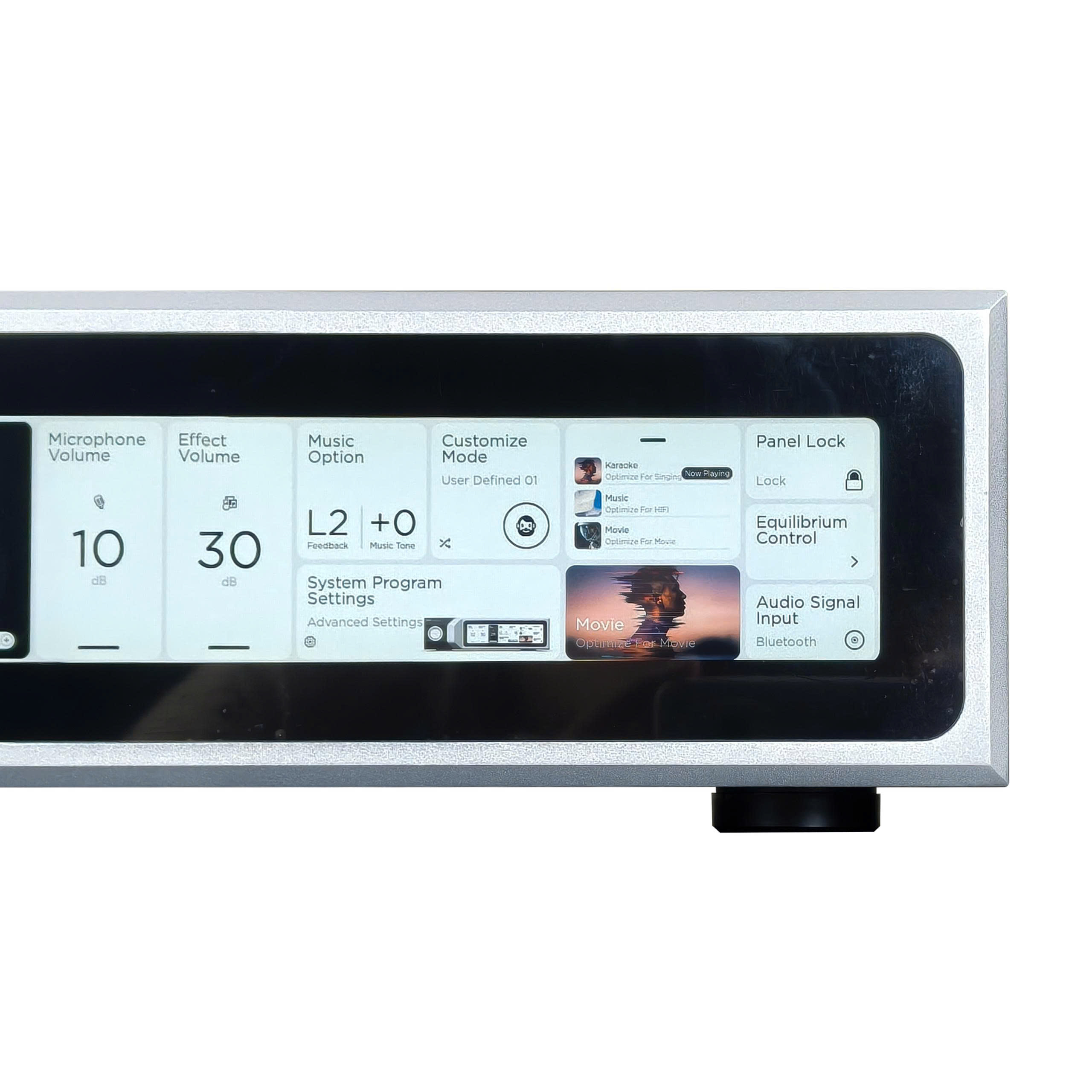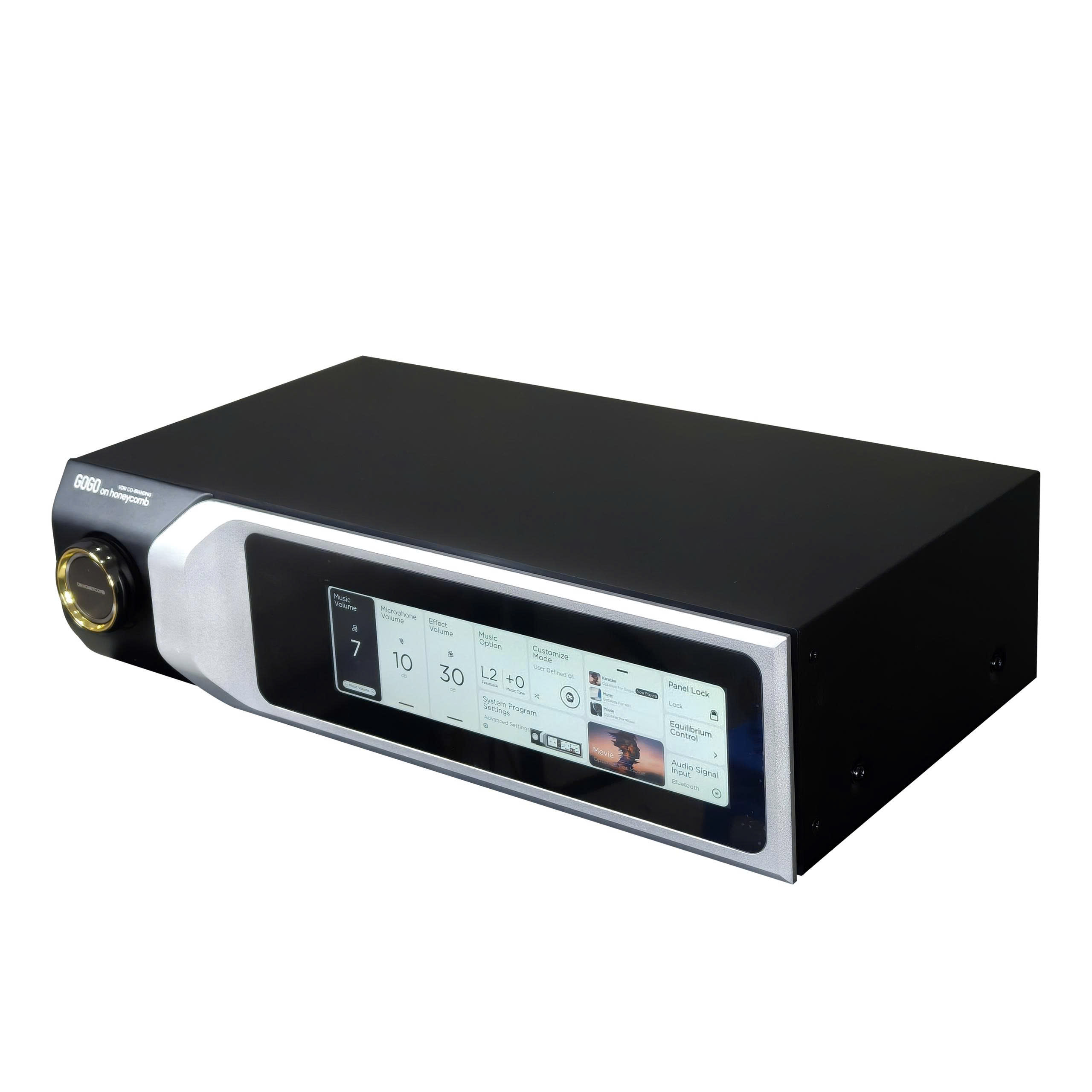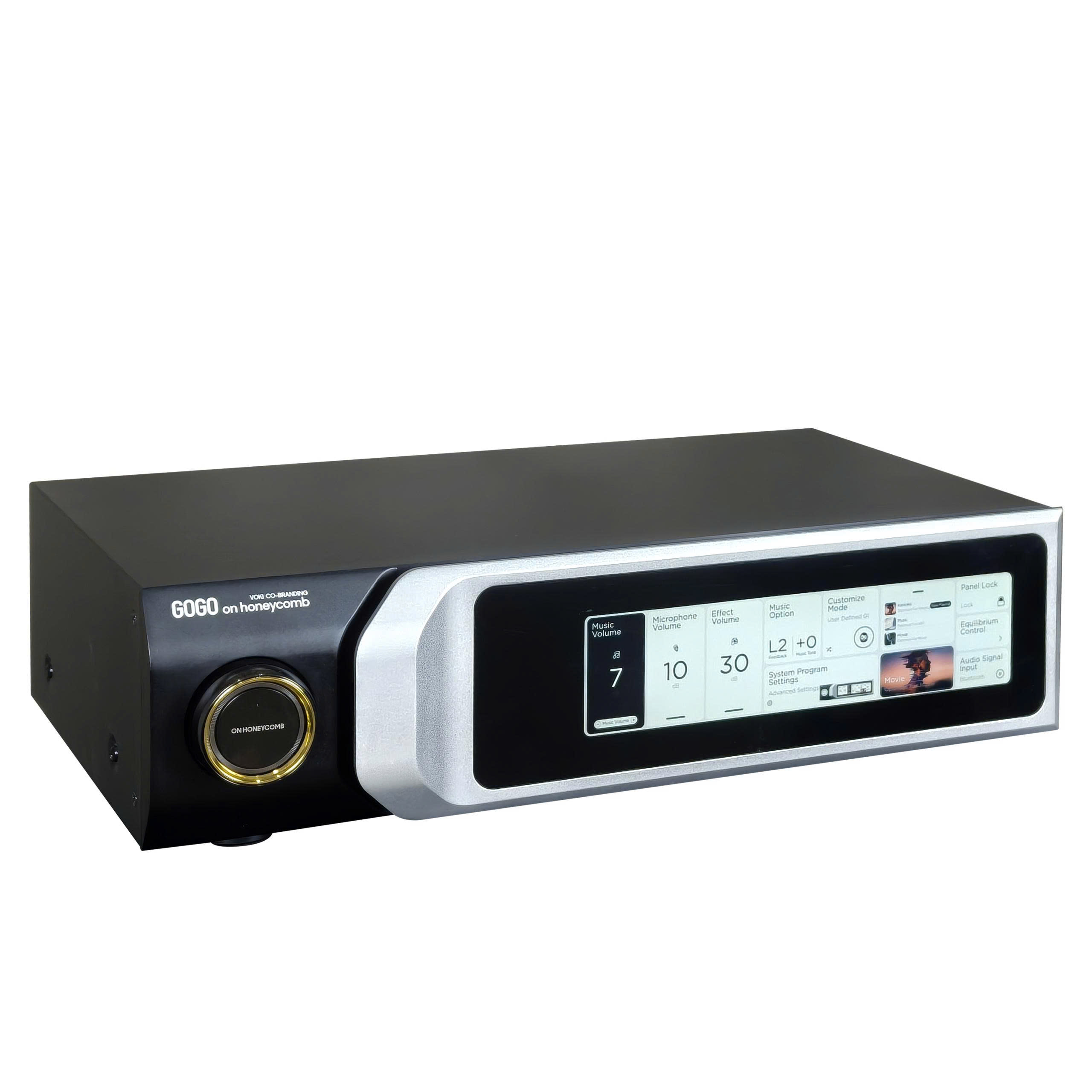 Điểm ấn tượng đầu tiên đó là On Honeycomb H5 Golden sử dụng màn hình cảm ứng 8,8 inch độ phân giải Full HD (1920 x 480 pixel) được phủ nhiều lớp chống chói với giao diện tiếng Anh, hiển thị dữ liệu âm thanh theo thời gian thực. Màn hình này cho phép điều chỉnh toàn bộ các chức năng của máy một cách trực quan mà không cần sử dụng đến máy tính. Nó thực sự mang đến cho người dùng trải nghiệm tốt hơn và cho phép những người không chuyên nghiệp tận hưởng niềm vui khi được tự điều chỉnh sản phẩm của mình một cách dễ dàng nhất.